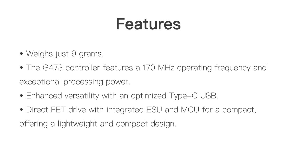 - The G473 control possesses 170MHZ operating frequency and outsatnding computing capability.