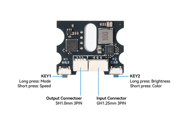 Elevate your nighttime flying with the NightFire RGB LED Strip—the same premium lighting featured in the Pavo20 Pro NightFire Limited Edition. Designed for enhanced visibility and style, it features vibrant RGB LEDs that bring your whoop to life with a stunning spectrum of colors and dynamic display modes. Easily switch between 10 preset lighting effects and 7 colors by pressing the buttons. The NightFire RGB LED Strip is built to shine brilliantly against the night sky. Light up your flight path like never before.